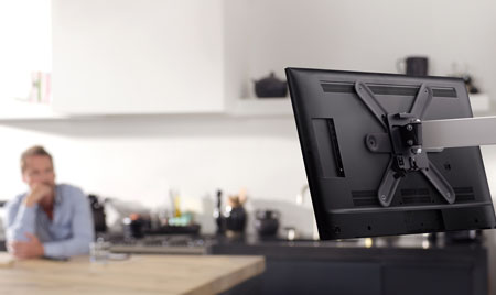 A television mount provides the ideal way to install your TV. Enjoy watching your favorite shows at the perfect viewing angle and refresh your home with a more modern look. Installing your TV on a wall-mounted bracket also keeps it out of the path of kids and pets and could free up floor space you might have reserved for a TV stand.